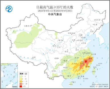 图1全国气温距平及日最高气温≥35℃天数图(2025年9月1日至9月30日)