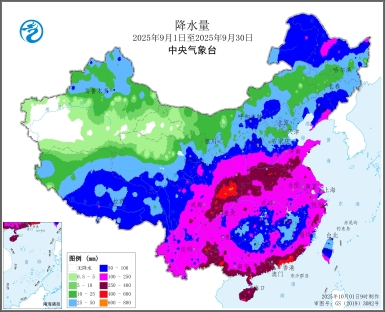 图2全国降水量及降水距平百分率图(2025年9月1日至9月30日)
