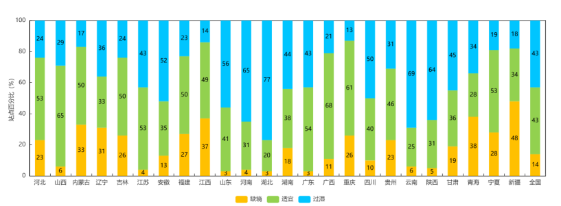 附图2  10月26日分省20厘米土壤墒情统计(站点百分比)