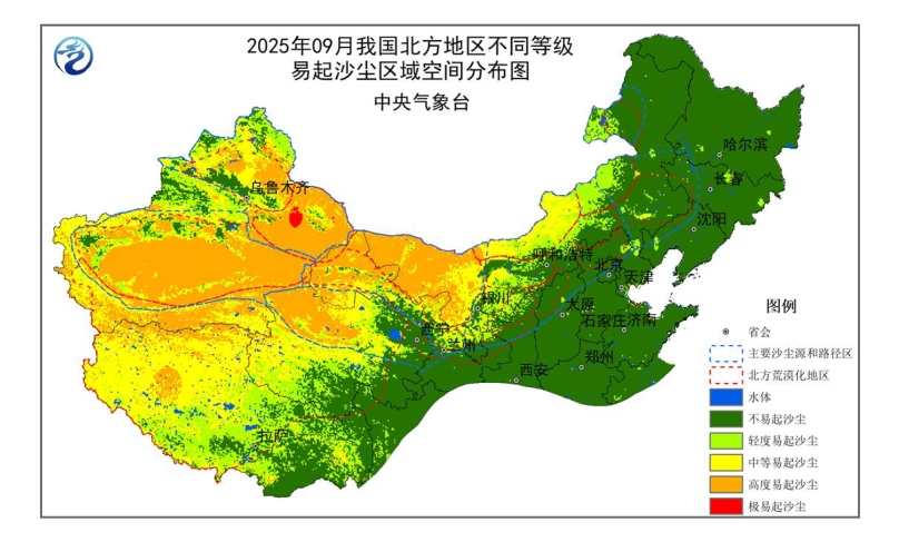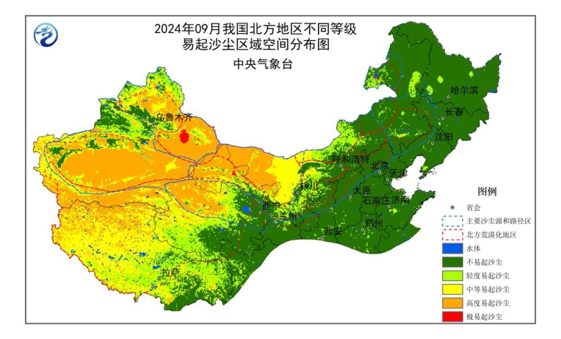 9月北方荒漠化区大部降水偏少 地表易起沙尘面积增加5.4%