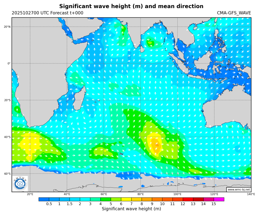 印度洋-浪高浪向叠加图