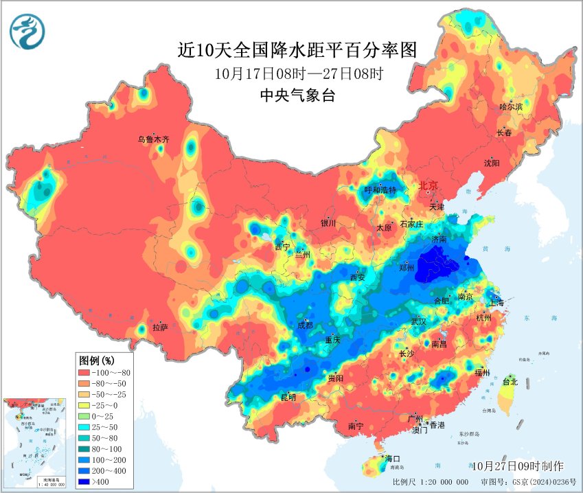 近10天降水距平百分率