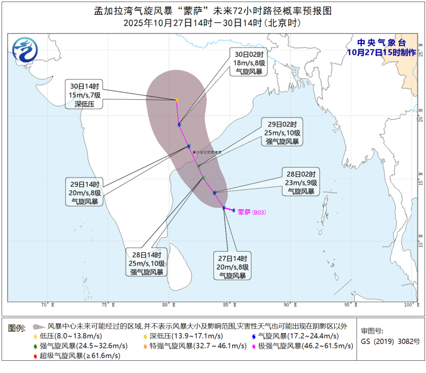 2 孟加拉湾气旋风暴“蒙萨”未来72小时路径预报图