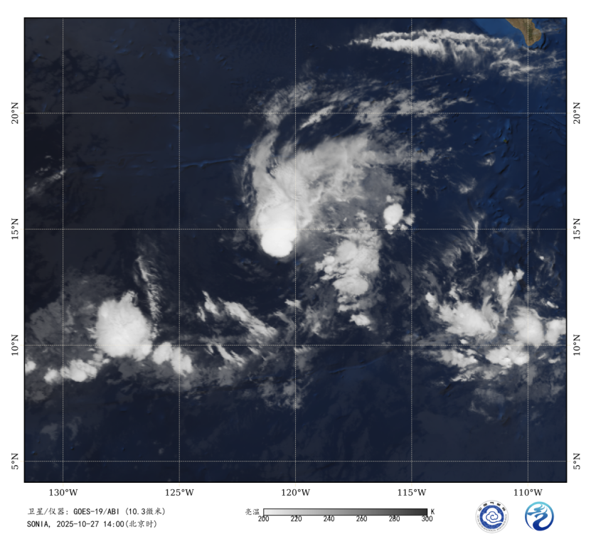 图1 卫星红外监测图像(北京时间2025年10月27日14时00分)
